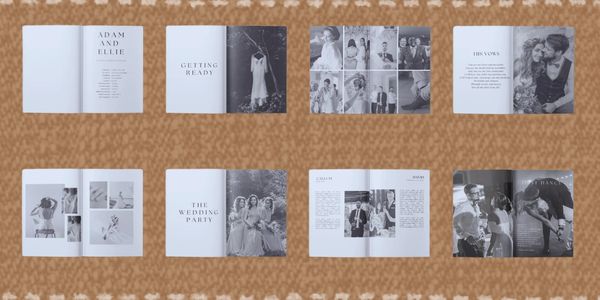 Transform your event photos into a beautifully crafted, magazine-style keepsake—personalized with your names, stories, curated layouts, timelines, quotes, vows, speeches, and more.