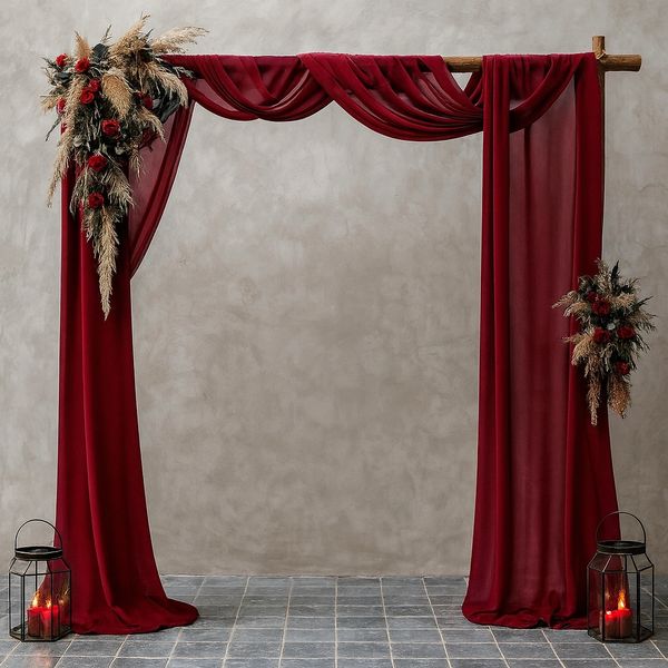 Add timeless elegance to your event with this rich burgundy sheer fabric backdrop. The luxurious color and flowing texture create a warm, romantic atmosphere, making it the perfect choice for weddings, anniversaries, formal dinners, or upscale corporate events. Its sheer design softens the light beautifully, ensuring every photo looks refined, sophisticated, and memorable.