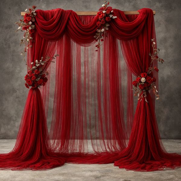A dreamy and elegant backdrop made with flowing wine-red tulle, perfect for adding a touch of romance and sophistication to weddings, anniversaries, and upscale events. Its soft texture and rich color create a warm, inviting atmosphere that enhances every photo.